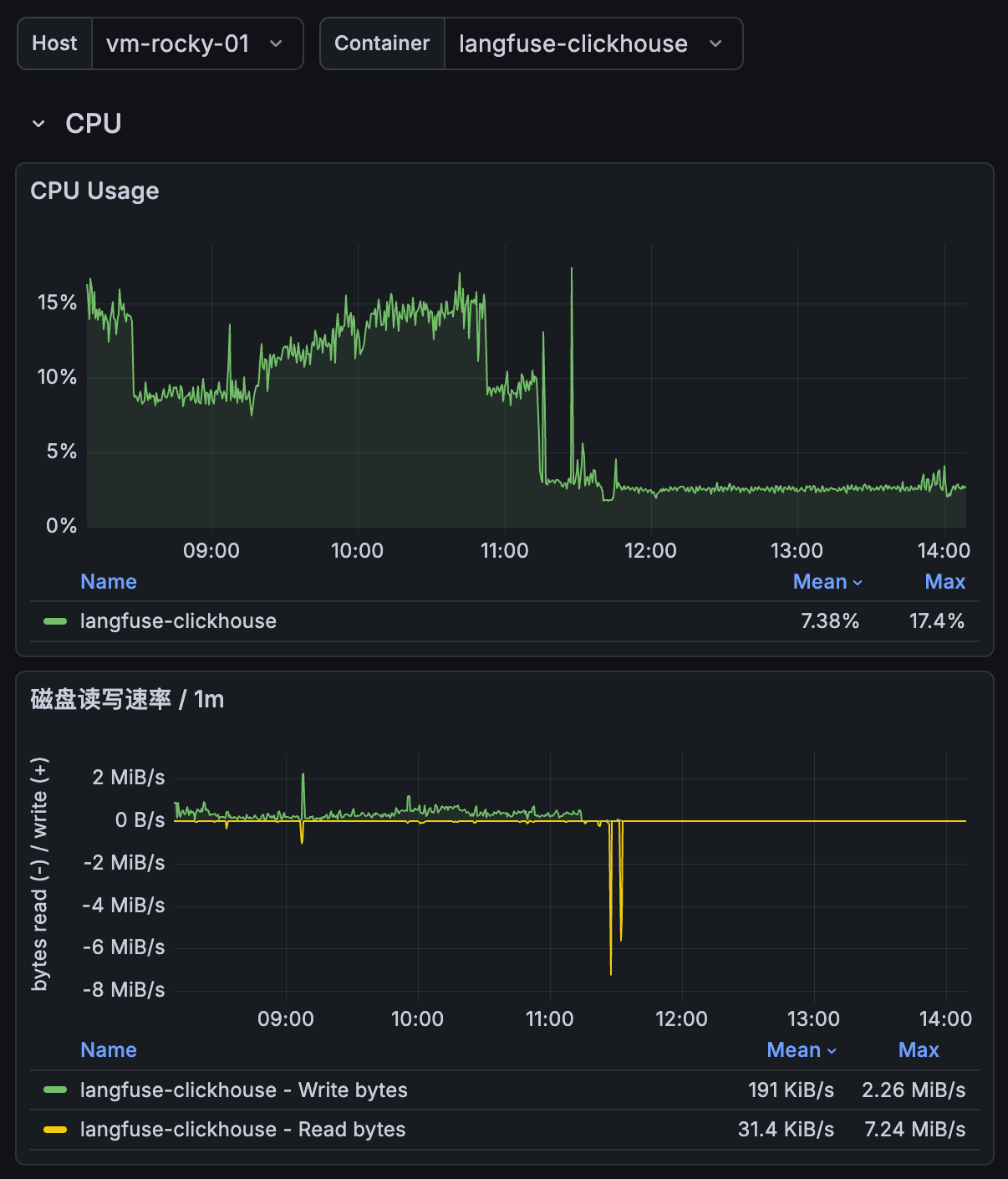 最近在研究 Langfuse,用 docker 部署了一套,但是发现空载的情况下 ClickHouse CPU 占用也不低,并且磁盘持续在写入,一不注意,7 天已经写入了 200 多 GB。